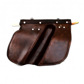 Realizzata in cuoio, è dotata di due anelli per poter agganciare cinture extra per trasportare giubbotti, sacchi a pelo e ciò che si preferisce. Inoltre è possibile agganciare tracolle per poterla trasportare ovunque.