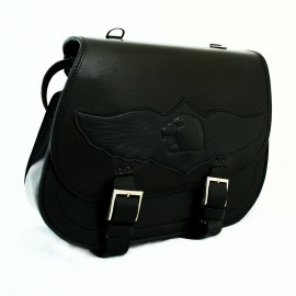 Realizzata in cuoio, è dotata di due fibbie laterali per regolare la profondità e di due anelli per poter agganciare cinture extra per trasportare giubbotti, sacchi a pelo e ciò che si preferisce. Inoltre è possibile agganciare tracolle per poterla trasportare ovunque.